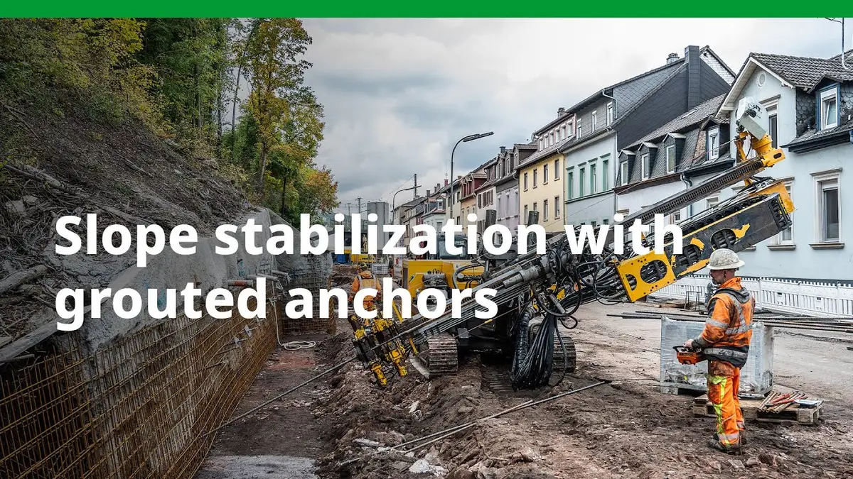 The challenge: First the necessary space needs to be created. The foundation report from the Kaiserslautern City Administration relied on the expertise of SPESA Spezialbau und Sanierung GmbH. “Using special excavators that can handle steep slopes, large sections of the old adjacent embankment were first excavated and removed,” explains Sebastian Otto, Project Manager for Spesa. In order to permanently stabilize the remaining slope, a total of 300 ground anchors with a length from 7 to 8 m were installed in the wall. Then the anchors were filled with a cement slurry and further reinforced with welded wire mesh. Work concluded with a 20 cm thick layer of shotcrete that stabilizes and protects the slope. “The slope is permanently secured now,” continues Sebastian Otto.
