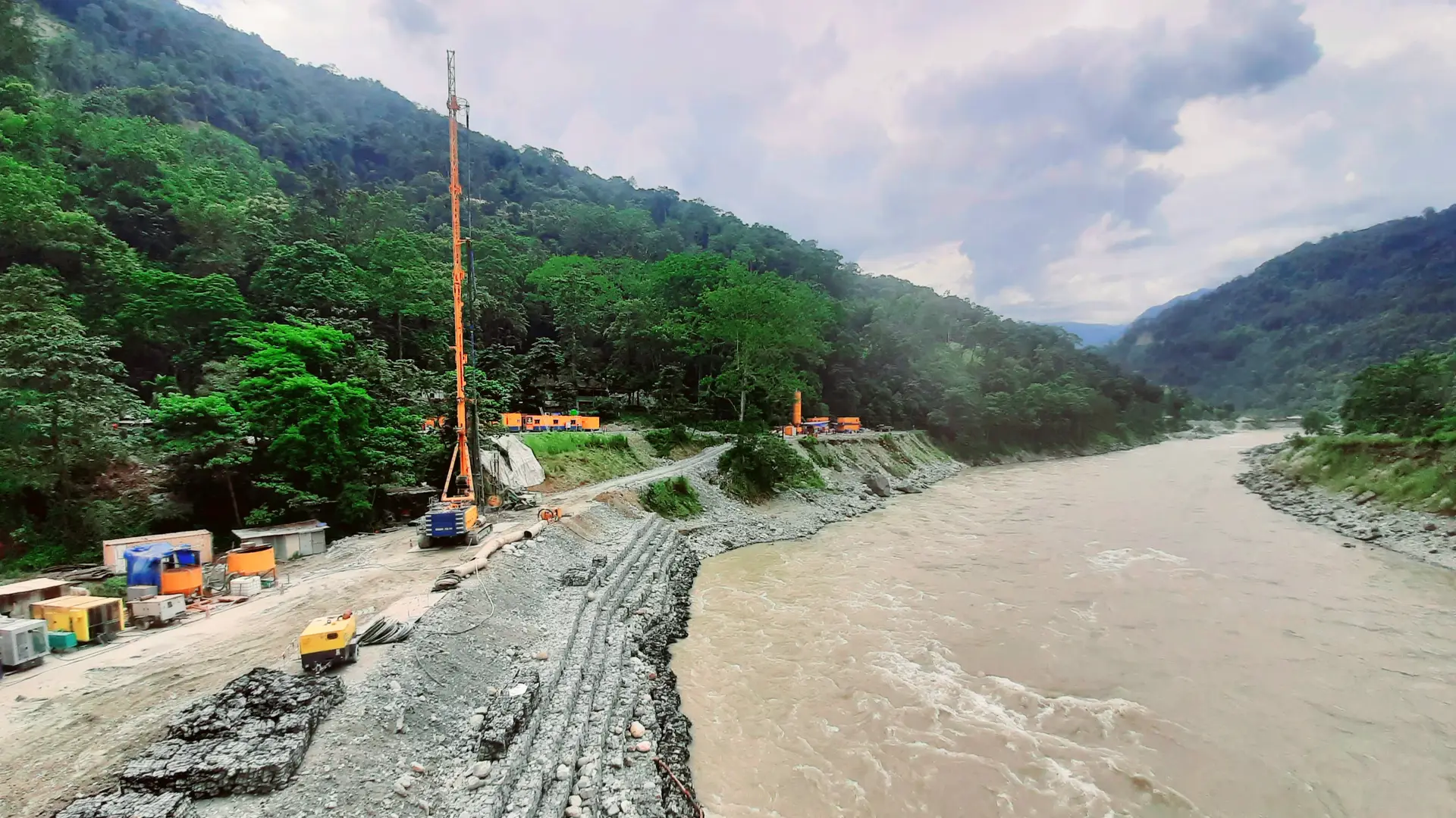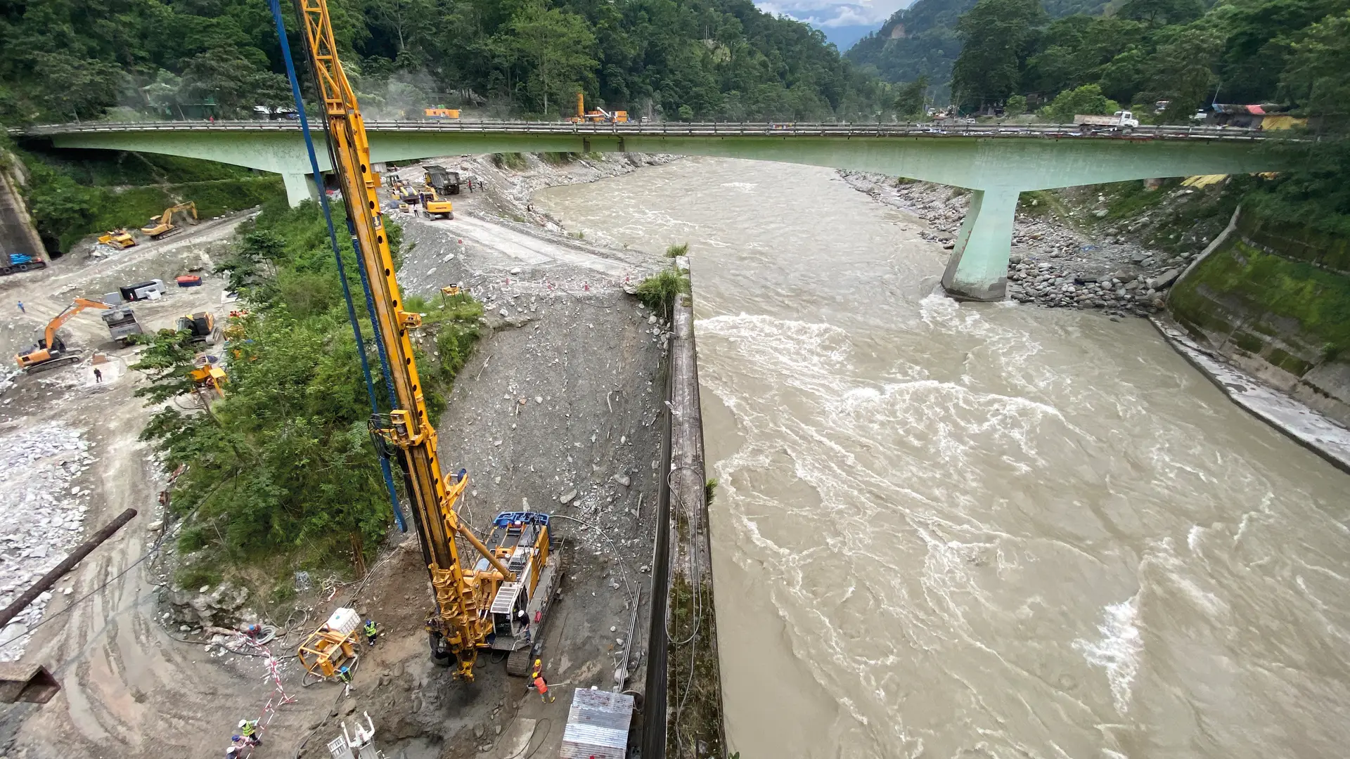 Cut-off wall work on the Teesta River in India
